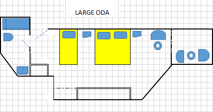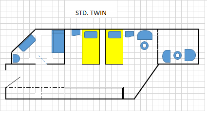 Maksimalni kapacitet je 2+1 ili 3 gosta. (Treći krevet je obezbeđen dodatnim ležajem ili ergonomskim kaučima)