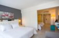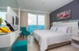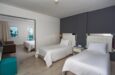 Hotel se sastoji od 4 zgrada sa tri, četiri, pet spratova gde su smeštene standardne sobe (za 2 osobe, 26 m²) I porodične sobe (2 spavaće sobe bez vrata, maksimum 5 osoba, 30 m²). Svaka soba sadrži: klima uređaj, telefon, mini-bar (besplatna voda-samo po dolasku), sef, wi-fi internet , TV, fen za kosu, balkon