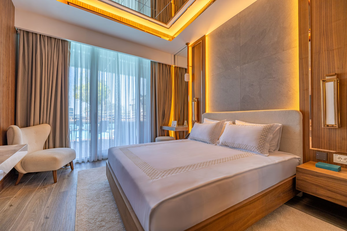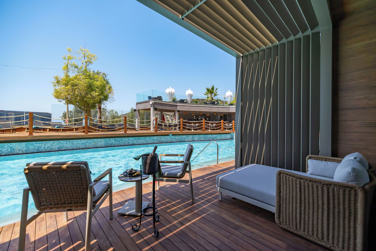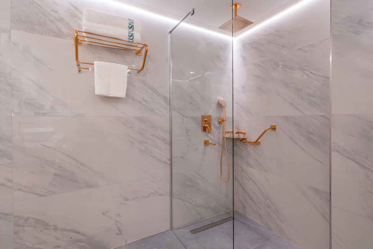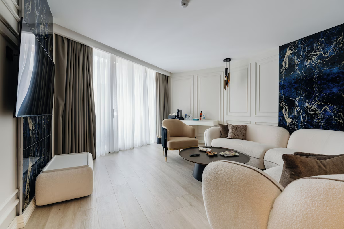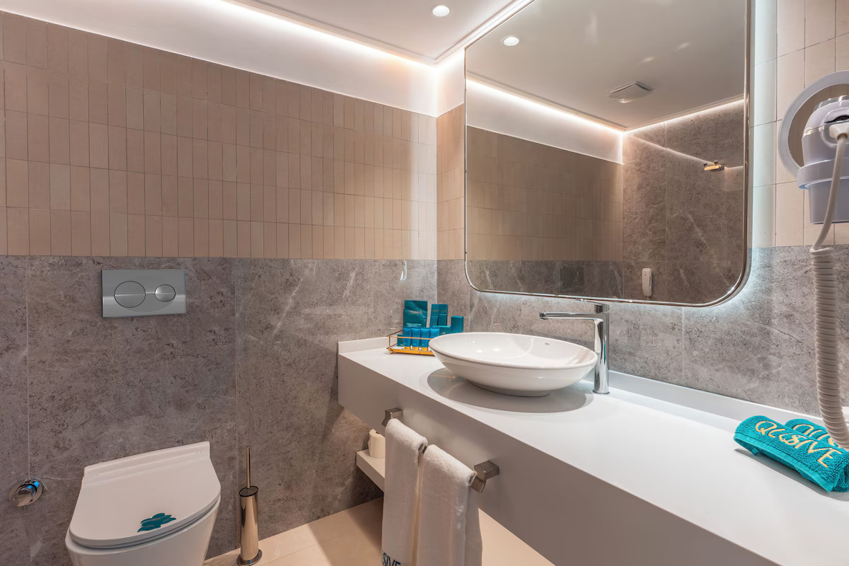 U objektu Qlusive Hotel sve jedinice sadrže ormar. Sve sobe za goste u objektu Qlusive Hotel imaju flat-screen televizor, klima-uređaj, kao i sopstveno kupatilo sa tušem i besplatnim toaletnim priborom, dok neke smeštajne jedinice uključuju i terasu. U objektu Qlusive Hotel sve smeštajne jedinice uključuju posteljinu i peškire. Većina soba ima balkon sa pogledom za uživanje gostiju. Neke smeštajne jedinice imaju bočni pogled na more. Smeštajne jedinice sa tepihom imaju bračni krevet. Takođe su dostupne odvojene spavaće sobe.